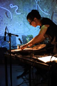 In ihrer künstlerischen Arbeit bewegt sie sich im Grenzbereich zwischen traditionellen, musikalischen Strukturen und experimenteller Klangkunst.